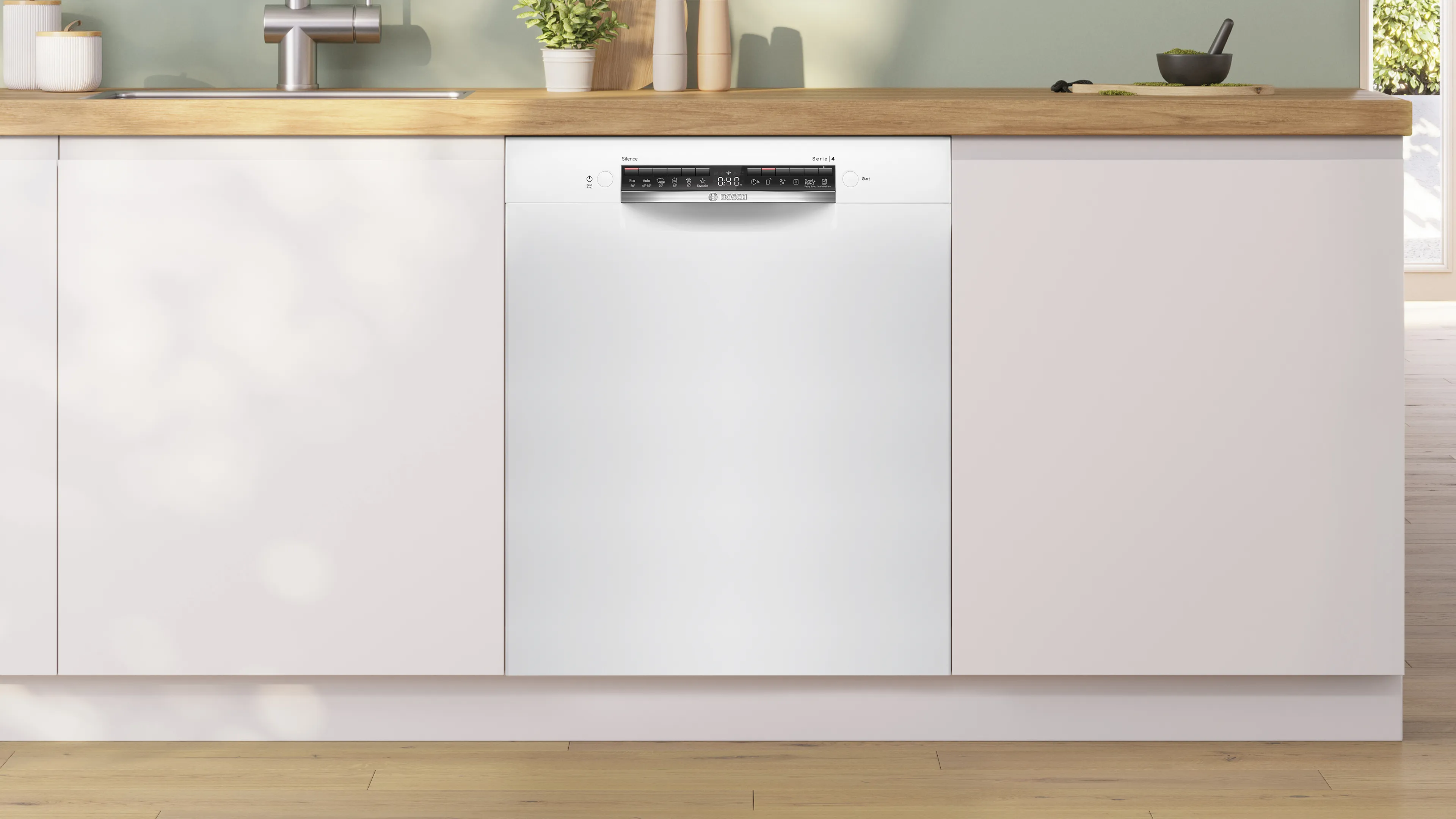 Посудомийна машина Bosch SMU4HTW00E стане ідеальним помічником у вашій кухні. Її ширина 598 мм та висота 815 мм дозволяють зручно вбудувати її в будь-які меблі. Вона має клас енергетичної ефективності A+, що забезпечує низьке енергоспоживання - всього 0.836 кВт/цикл у програмі Eco 50°C, а під час роботи тихо працює з рівнем шуму лише 46 дБ.