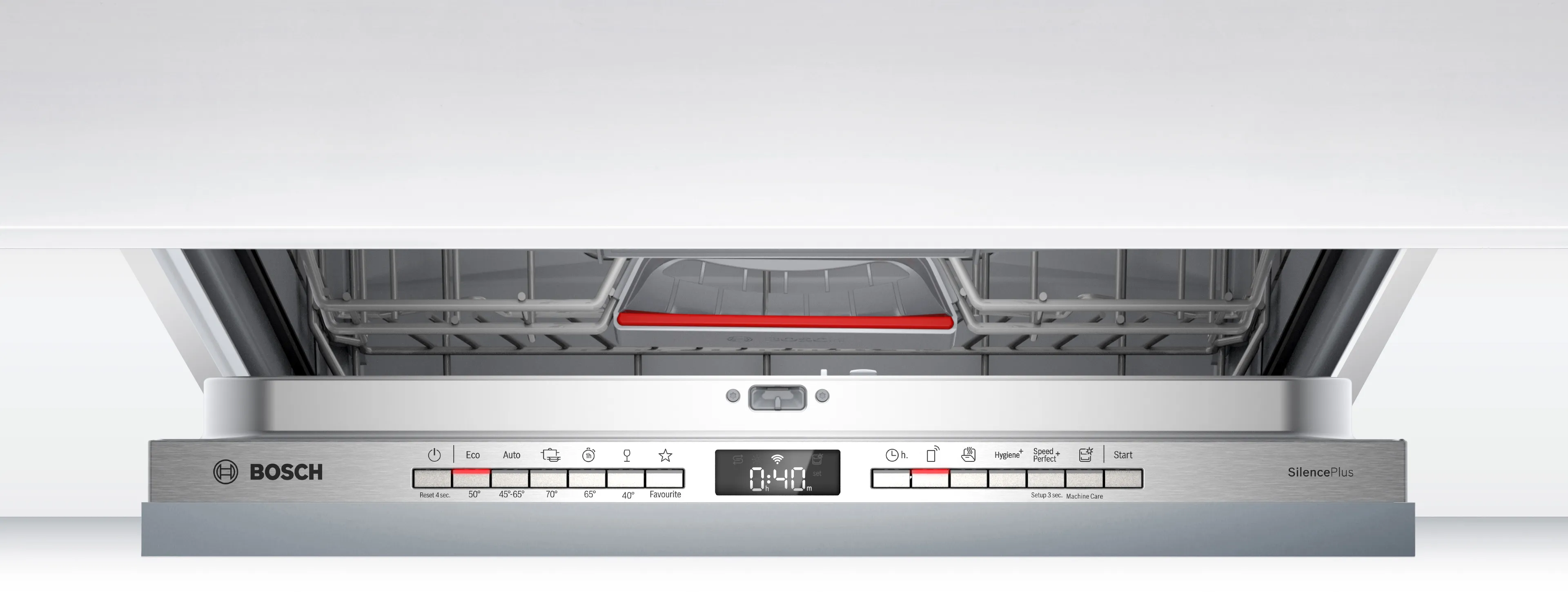 Посудомийна машина Bosch SMV4EVX15E також обладнана досить гнучкою системою кошиків, що дозволяє легко організувати простір для завантаження, а wifi-з’єднання за допомогою Home Connect дає можливість керувати машиною дистанційно.