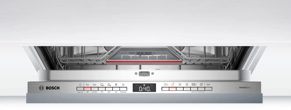 Завдяки технології Home Connect™, ви зможете контролювати і управляти роботою машини з вашого смартфона. Додаткова функція Extra Dry забезпечує особливо інтенсивне сушіння пластикового та скляного посуду, роблячи його ідеально чистим і сухим.