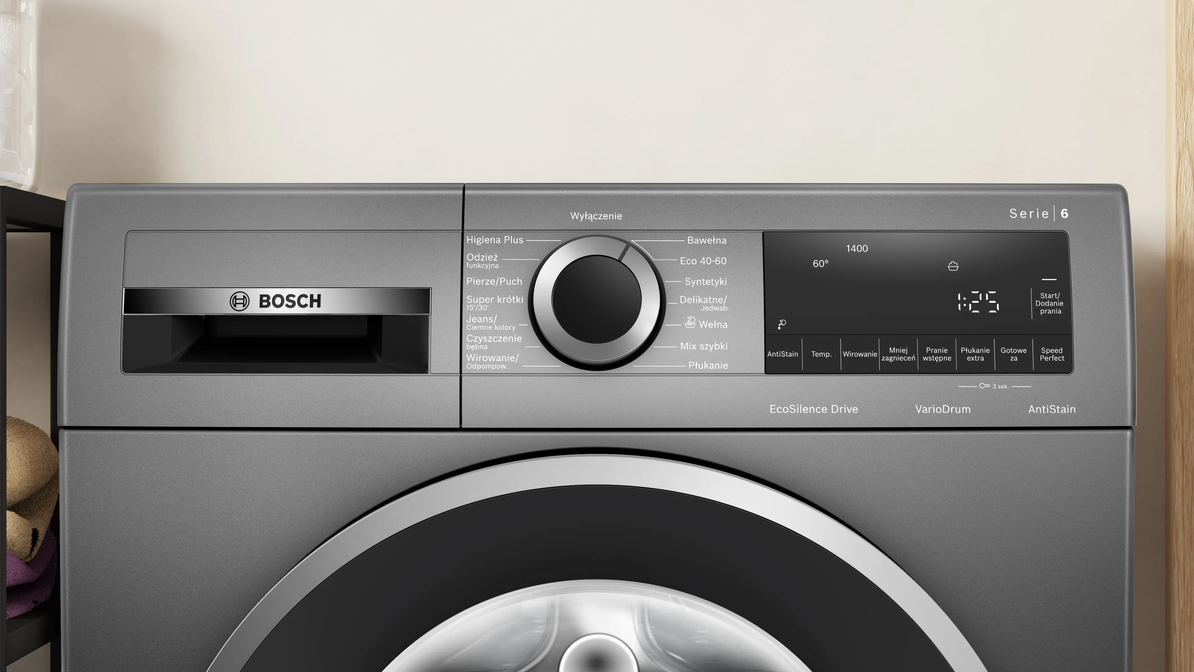 Пральна машина Bosch WGG2440RPL має велику загальну вмісткість - 63 літри, що робить її ідеальним варіантом для більшого об'єму прання.