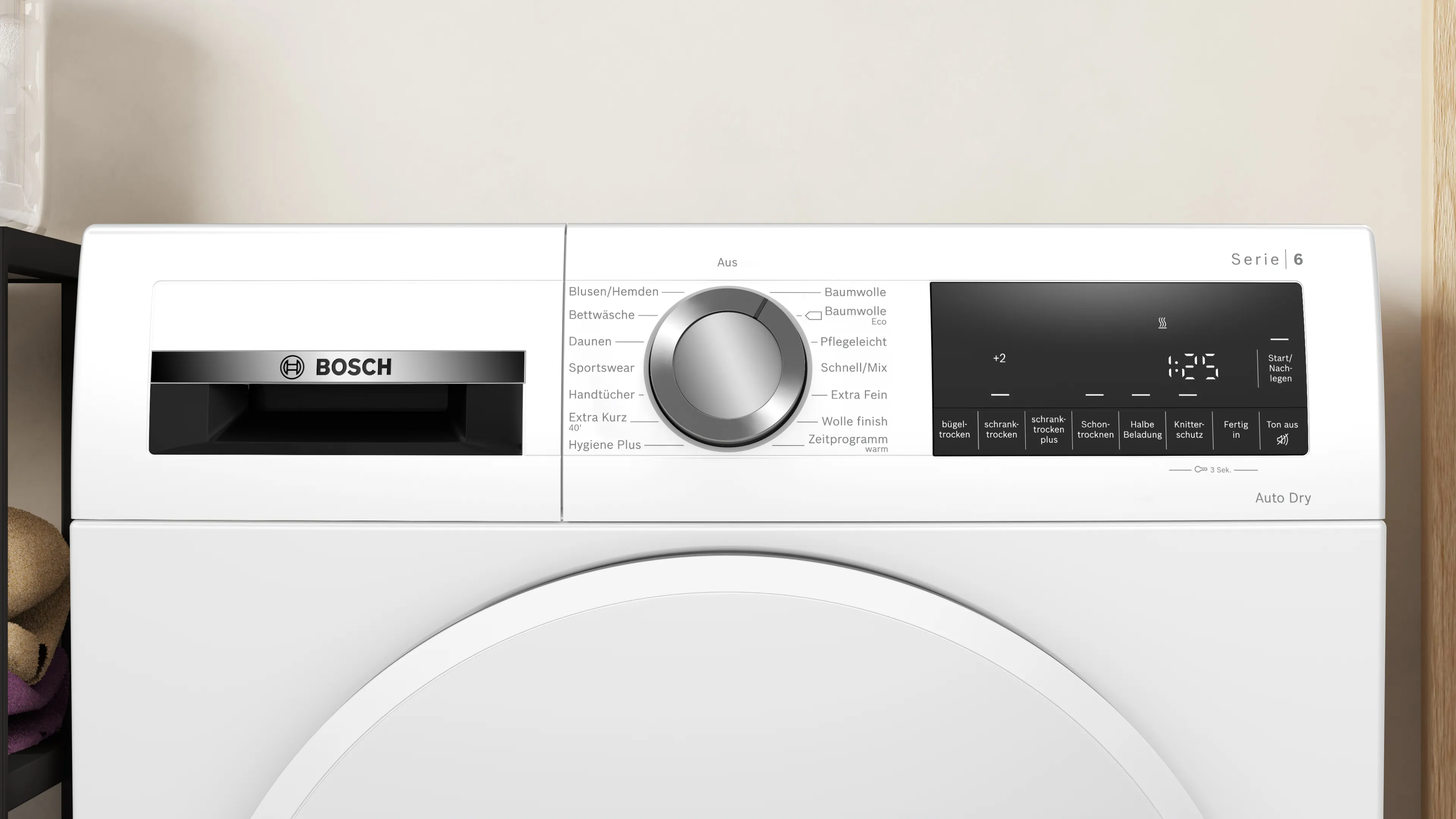 One of the main features of the Bosch WQG233DF4 is its Auto Dry technology, which prevents over-drying of clothes, ensuring їх максимально дбайливе прання. Доступні програми для різних типів тканини, включаючи бамбук, синтетичні матеріали, спортивний одяг та навіть вовняні вироби, роблять цю модель універсальною.