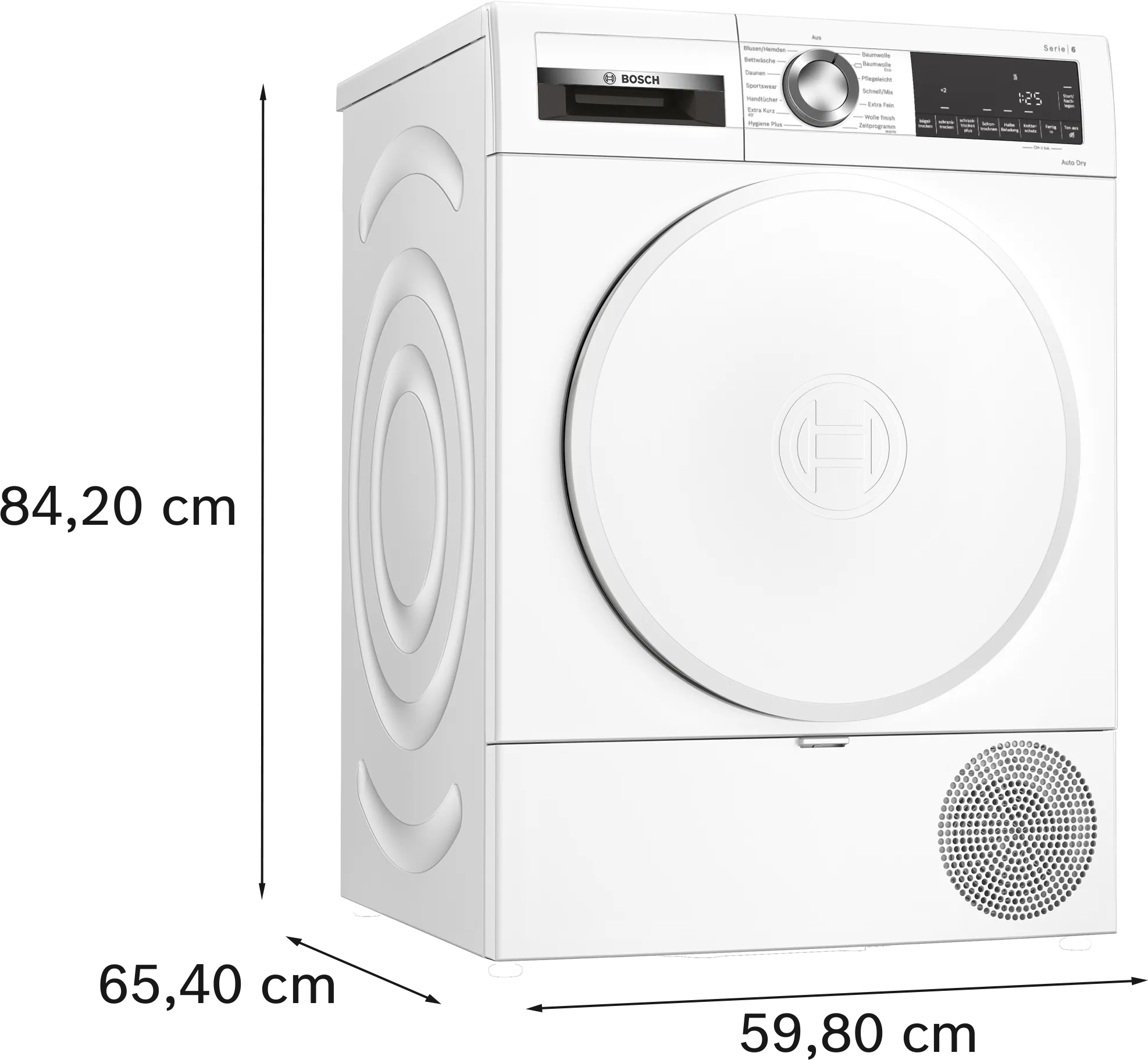 Сушильна машина Bosch WQG233DF4 - це ідеальне рішення для вашого дому, яке поєднує в собі ефективність та комфорт. Її максимальна завантажувальна здатність становить 8.0 кг, що дозволяє вам висушити велику кількість білизни за один раз. Компактні розміри (висота 842 мм, ширина 598 мм, глибина 613 мм) роблять її придатною для будь-якого приміщення.