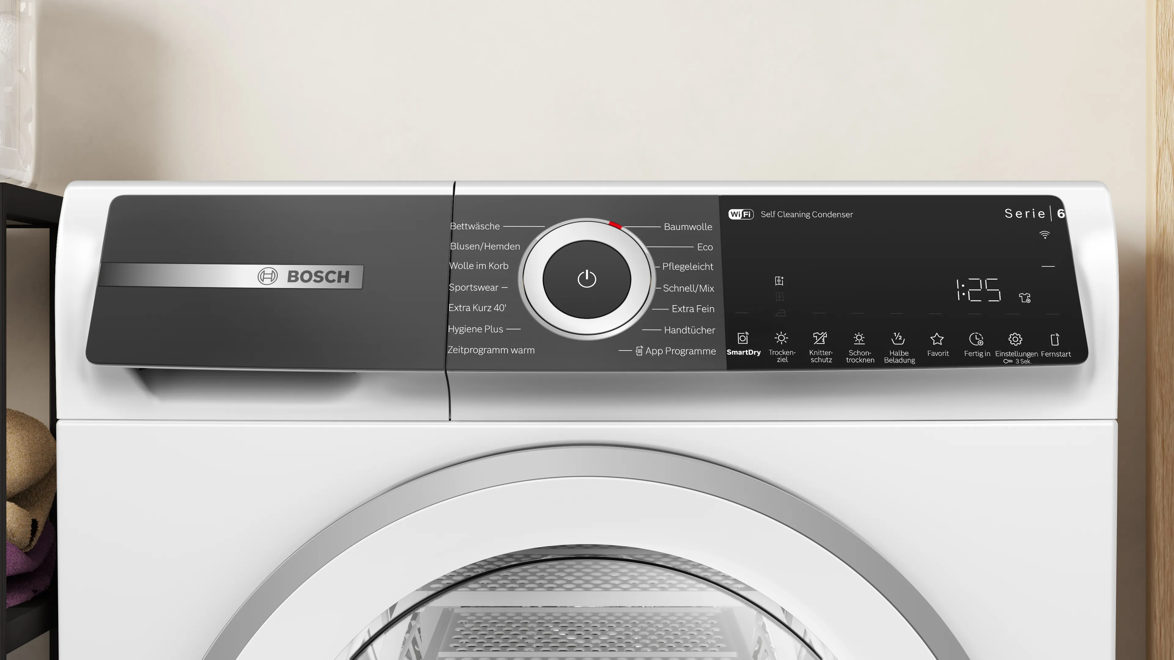 Сушильна машина також підтримує взаємозв'язок з домашніми пристроями через Home Connect, що дозволяє вам контролювати процес сушіння з вашого смартфона. Пристрій має різноманітні програми сушіння, включаючи бавовну, делікатні тканини, спортивний одяг та інші.