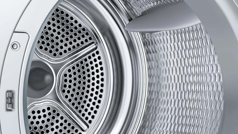 Технологія AutoDry контролює вологість білизни та запобігає пересушуванню. Антивібраційний дизайн забезпечує стабільність та низький рівень шуму, що досягає всього 65 дБ. Завдяки системі SensitiveDrying ваша білизна сушиться дбайливо і не мнеться. Bosch WTH85077PL – це ідеальне рішення для комфортної і ефективної сушки вашого одягу.