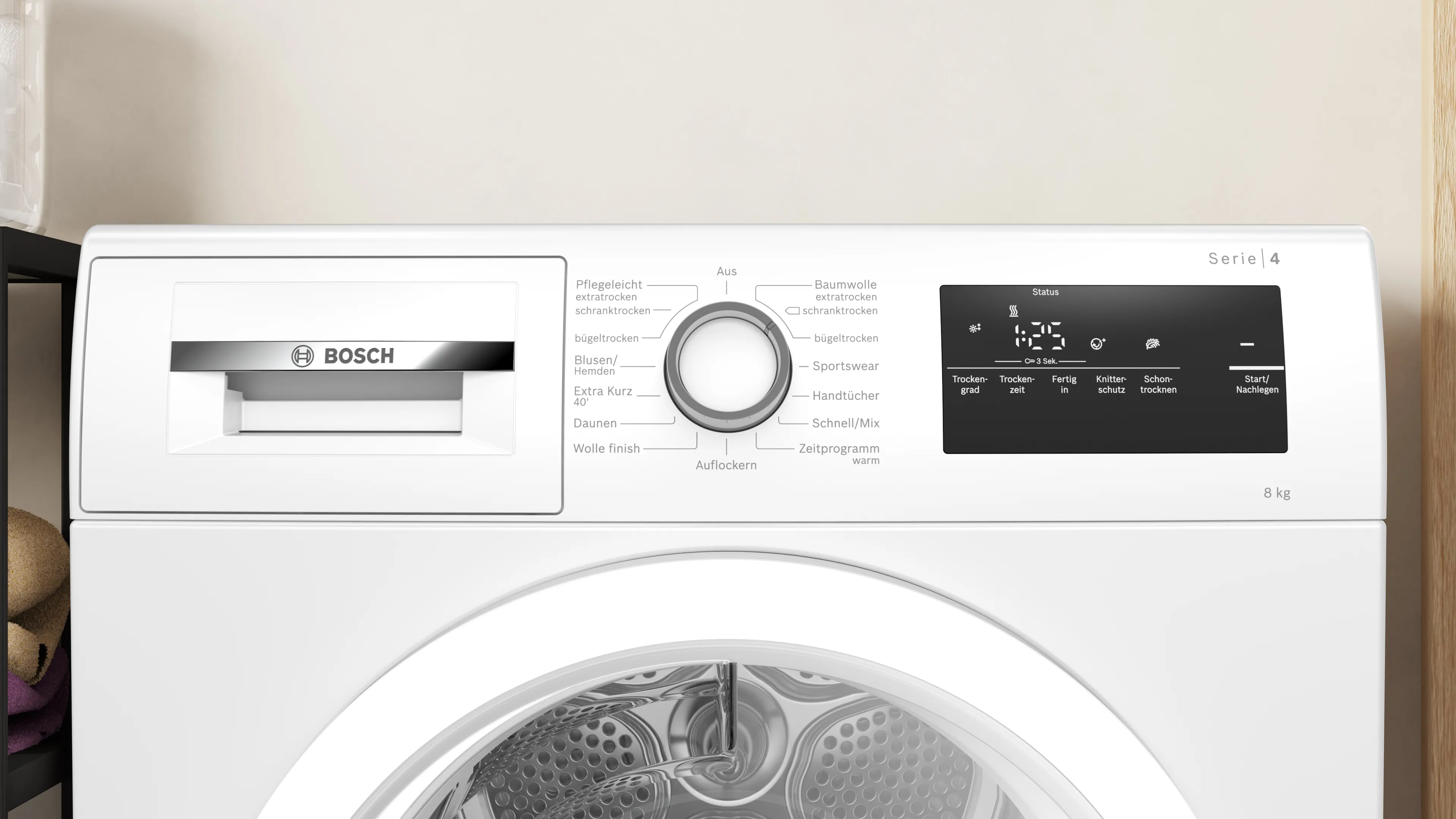 Програми сушіння включають Auto Dry, що дозволяє автоматично регулювати час сушіння, а також Extra Kurz 40', що забезпечує швидку сушку в екстрених випадках. До того ж, ви отримаєте всі переваги енергетичної ефективності класу A++, що забезпечує значну економію електроенергії.