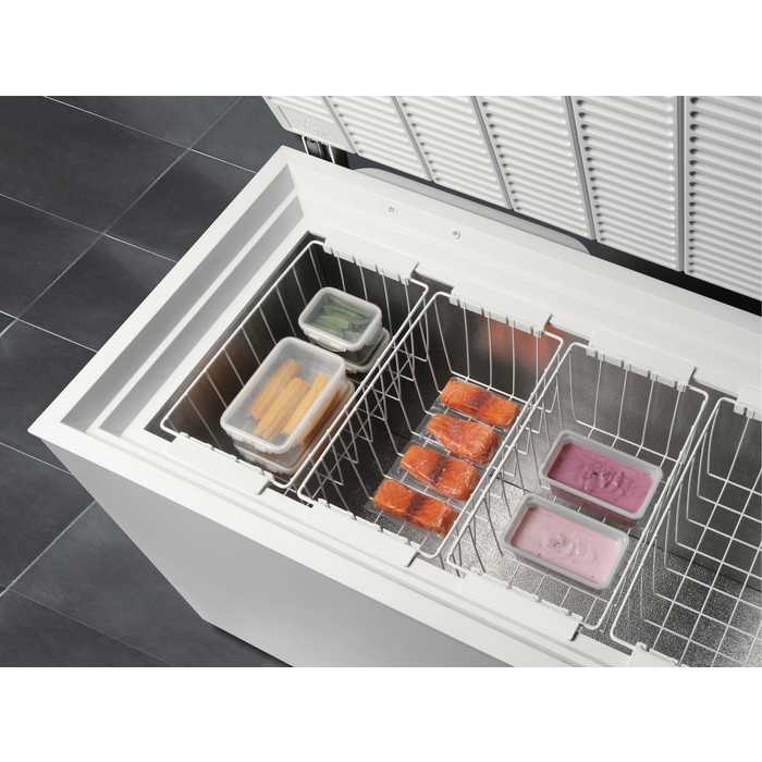 Енергозбереження є одним з ключових аспектів цього моделі — вона має клас енергоспоживання A+, що забезпечує ефективну роботу з низькими витратами електроенергії. Номінальна напруга в 230-240 В та потужність лише 80 Вт також вказують на високий рівень продуктивності при низькому споживанні. Об'єм морозильної камери становить 260 л, що дозволяє зберігати велику кількість продуктів.