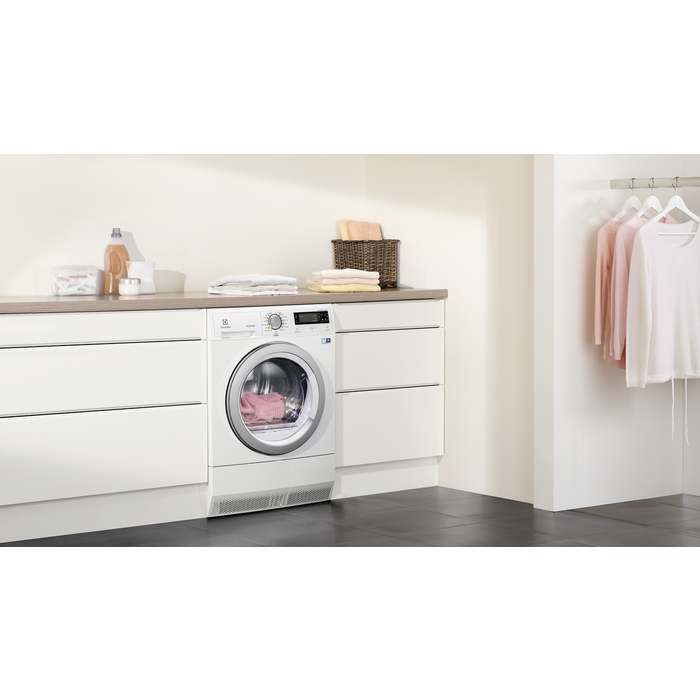 Функціонал Electrolux EDH3487RDE включає в себе багато різних режимів сушіння, таких як антизминання, довге сушіння, сушіння до прасування, а також м'яке та інтенсивне сушіння. Це дозволяє адаптувати процес сушіння під ваші потреби. Ви також отримаєте повний контроль над станом сушіння завдяки зручним індикаторам для фази закінчення програми та стану фільтра та конденсатора.