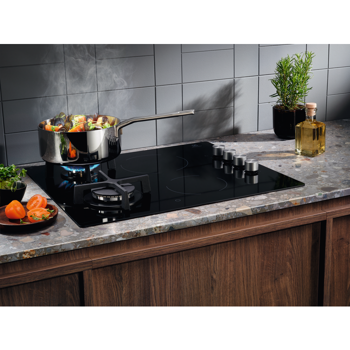 Варильна поверхня Electrolux EGE6172NOK - це сучасний прилад з газовими конфорками на скляній поверхні, що поєднує в собі функціональність та естетику. Прилад відрізняється шириною 580 мм та має інтегроване електричне підпалювання, яке вмикається поворотним регулятором. Його оснащено адаптивними зонами нагріву та датчиками Assisted Cooking. Також, він має газ-контроль на основі термопари, що припиняє подачу газу у випадку, якщо зникає полум’я. Технічні характеристики: максимальна потужність 4600 Вт, наявність ручок керування з розташуванням елементів справа, номінальна напруга 230 В, максимальна потужність 3000 Вт. Варильна поверхня має наступні конфорки: ліва передня - швидка 2700W/100mm, ліва задня - середньої швидкості 1900W/70mm, права передня - radiant element 1200W/145mm, права задня - radiant element 1800W/180mm. Також, вона оснащена підставками для чавунного посуду та набором для переведення на інший тип газу. Основний колір варильної поверхні - чорний, а ручок керування виконаний з нержавіючої сталі. Вона встановлюється незалежно, має довжину кабелю живлення 1.1 м та розміри: ширина 580 мм, глибина 510 мм, ширина вбудови 550 мм, глибина вбудови 470 мм. Варильна поверхня Electrolux EGE6172NOK відповідає всім вимогам безпеки та має номер продукту (PNC) 949 760 070. Виробництво - Італія. Також вона оснащена термопарою та відповідає технічним нормам ЄС 66/2014.