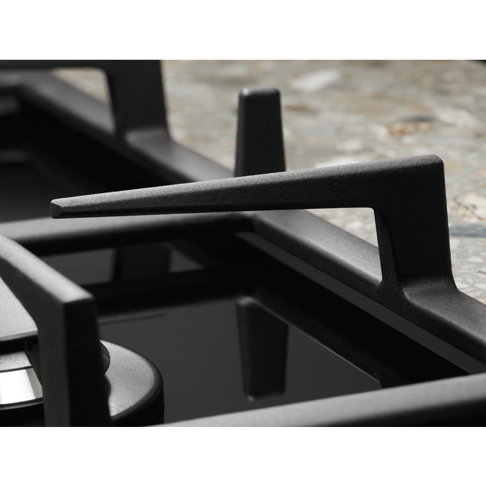 Запалювання і безпека забезпечуються за рахунок інтегрованої запальної системи та автоматичного відключення газу у випадку пожежі. Решітки з високоякісного чавуну забезпечують надійну підтримку посуду під час приготування.