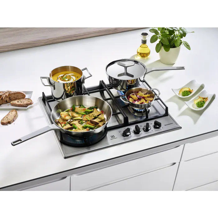 Представляємо вам газову плиту Electrolux EGH6349BOX, яка стане ідеальним доповненням вашої кухні. З шириною 594 мм, вона оснащена чотирма стовпцями для приготування, які включають в себе потужний Multicrown WOK на 4000 Вт, а також два середніх пальника на 1900 Вт з функцією Bridge.