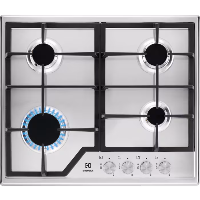 Electrolux EGS6426SX має **вбудовану запальничку** для легкого та швидкого запалювання вогню, а також **захист від витоку газу**, який автоматично припиняє подачу газу у разі згасання полум'я. Плита оснащена **чавунними решітками**, які забезпечують стабільність посуду під час приготування їжі.