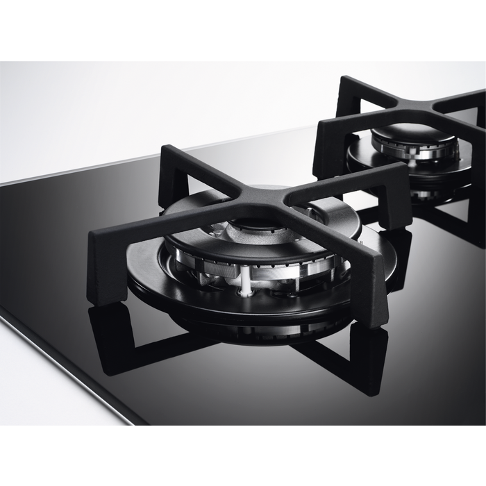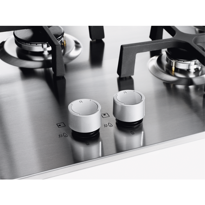 Інтегроване електричне підпалювання, що вмикається поворотним регулятором, забезпечує легке та швидке запалювання газу. Газ-контроль на основі термопари гарантує, що подача газу припиняється, якщо зникає полум’я, що робить користування варильною поверхнею ще безпечнішим.