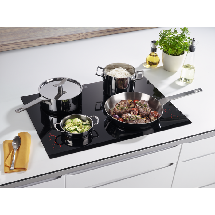 Ця індукційна варильна поверхня Electrolux EHD7740FOK - це ідеальний вибір для тих, хто цінує швидкість, безпеку та функціональність при готуванні. Завдяки технології Booster ви зможете швидко нагріти їжу, а функція EcoTimer™ дозволить ефективно використовувати енергію. Крім того, індукційна плита має безліч функцій для зручності та безпеки використання. Обирайте надійність та якість з Electrolux!