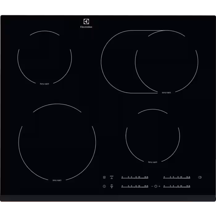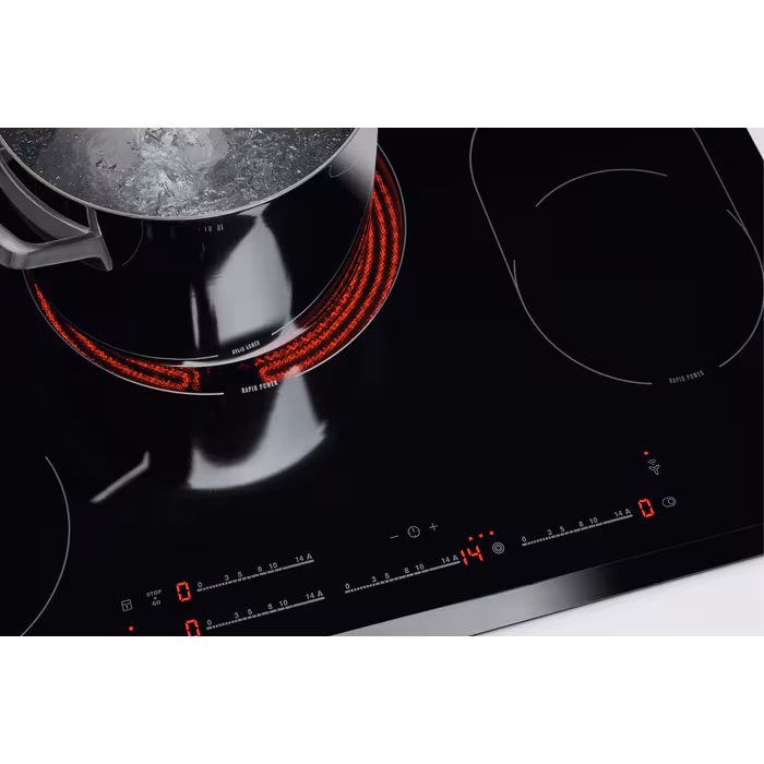 Плита обладнана чотирма конфорками, серед яких є двоконтурна овальна зона і високошвидкісні елементи з потужністю до 3000W. За рахунок автоматичного швидкого нагріву та функції CleverHeat™, ви зможете швидко і ефективно готувати страви, використовуючи залишкове тепло. Функція EcoTimer™ дозволяє зберігати енергію, вимикаючи нагрівання заздалегідь, коли це можливо.