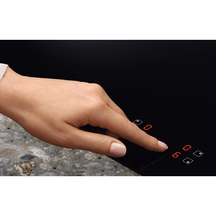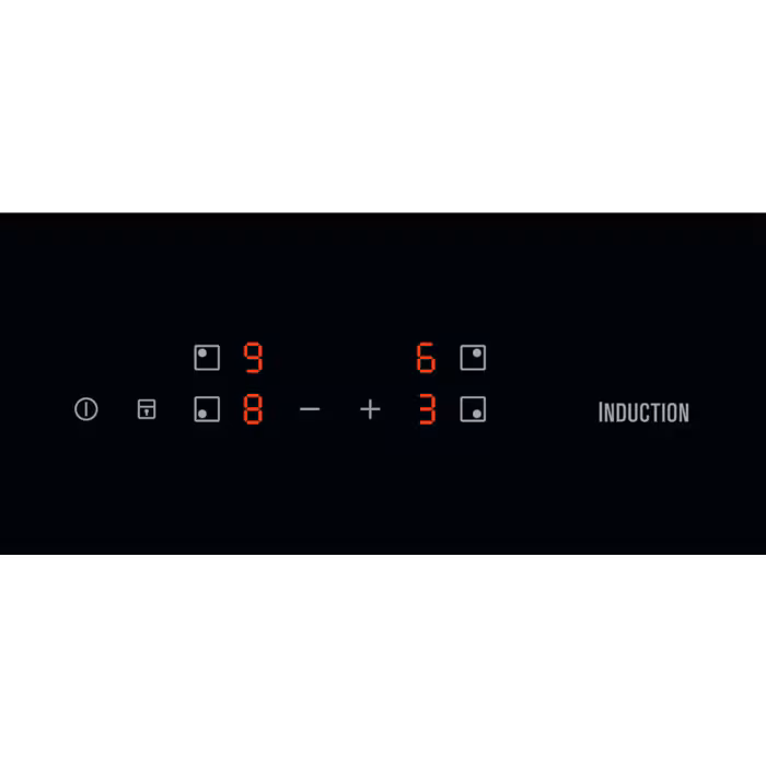Ця плита оснащена **індукційними елементами** із потужністю до 2800 Вт, що забезпечує швидке та ефективне приготування. Кожна зона має функцію **Booster**, яка дозволяє досягати максимальної потужності в найкоротші терміни, а також **викриття присутності посуду**, що підвищує безпеку та зручність використання. Управління здійснюється через **сенсорну панель** з **підсвіткою**, розташовану з правого боку, що робить її використання простим і інтуїтивно зрозумілим.