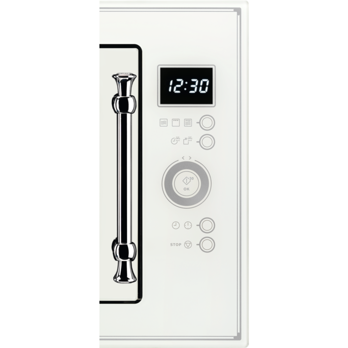 Естетика моделі підкреслюється кольором шампань, який додає особливого шарму. Внутрішнє освітлення та сучасний світлодіодний дисплей з сенсорним управлінням роблять користування мікрохвильовою піччю ще більш приємним і інтуїтивно зрозумілим. Спеціально розроблені програми дозволяють налаштовувати два заплановані функції для запуску по черзі, що значно спрощує процес приготування.