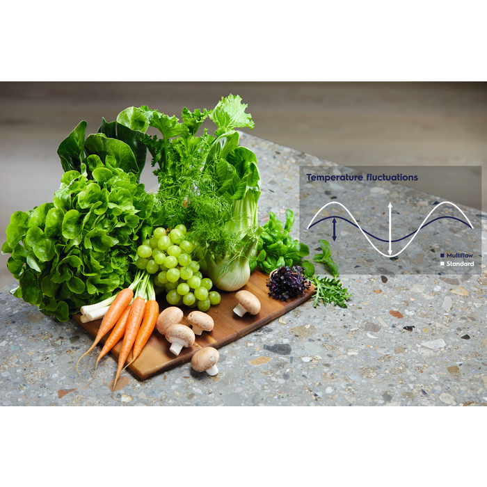 Функції "Action Cool" та "Action Freeze" швидко охолоджують та заморожують продукти, зберігаючи їхній смак і вітаміни. Звуковий та візуальний сигнали попередження про високу температуру додатково забезпечують безпеку зберігання продуктів. Зовнішнє електронне регулювання температури дозволяє легко налаштувати потрібний рівень охолодження.