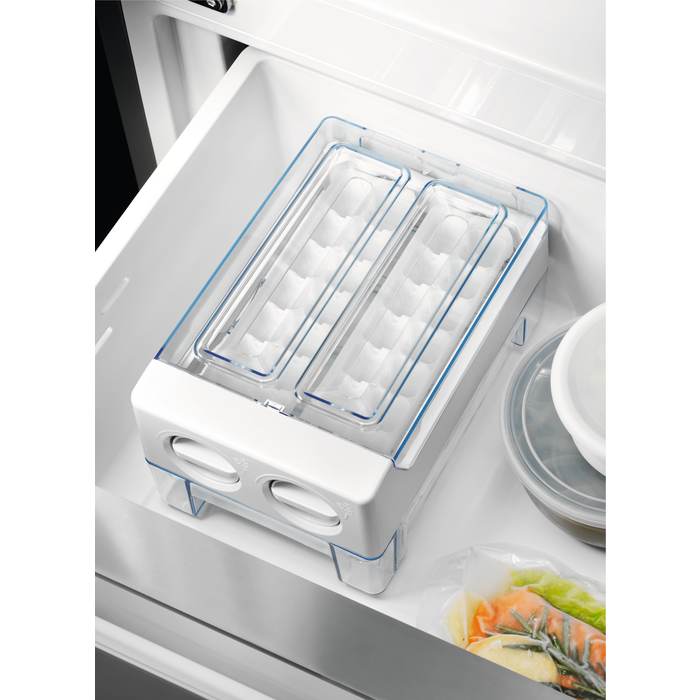 Виберіть Electrolux EN6086JOX, і ви отримаєте надійний, функціональний і стильний холодильник, який відповідає всім сучасним вимогам, адже він не лише практичний, але й естетично привабливий завдяки сріблястому кольору та дверцятам з нержавіючої сталі з покриттям Antifingerprint.
