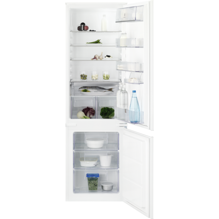 Ця модель - ідеальне рішення для вбудованої кухні, адже вона має повністю інтегровану конструкцію і фронти на направляючих, що дозволяє легко вписати холодильник в інтер'єр. З його габаритами 1780 мм заввишки, 560 мм завширшки та 550 мм завглибшки, він займе мінімум місця, при цьому пропонуючи суттєву загальну ємність у 268 літрів, з яких 72 літри - це об'єм морозильної камери.