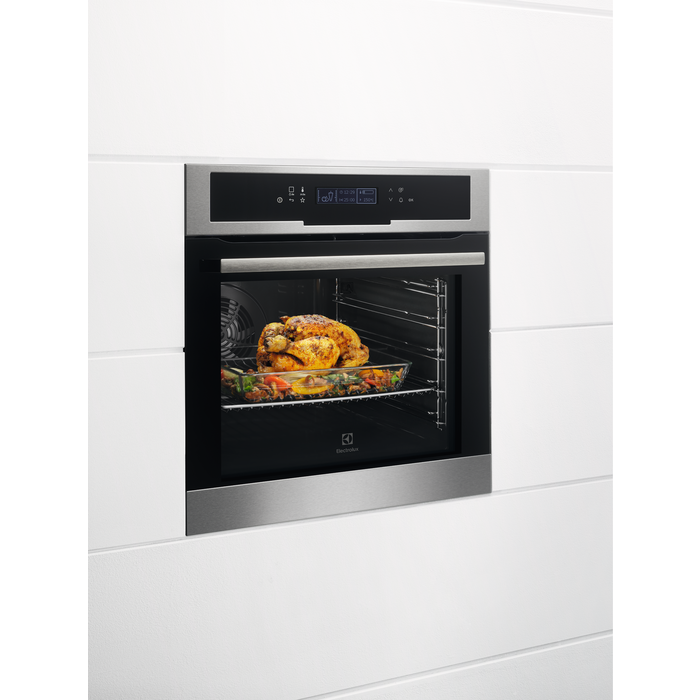 Ця модель також включає автоматичну функцію захисту від дітей, що додає додатковий рівень безпеки у вашому домі. Вибирайте спеціалізовані програми відповідно до ваги продуктів і насолоджуйтесь приготуванням ідеальних страв разом із Electrolux EOB5750AOX.