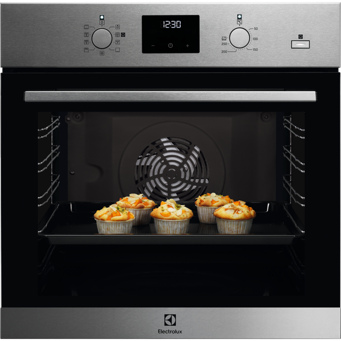 Зручний інтерфейс з плоскими ховаючими ручками дозволяє легко налаштовувати температури в діапазоні від 50°C до 275°C. Окрім того, наш духовий шкаф оснащений галогенним освітленням, що дозволяє вам контролювати процес приготування.