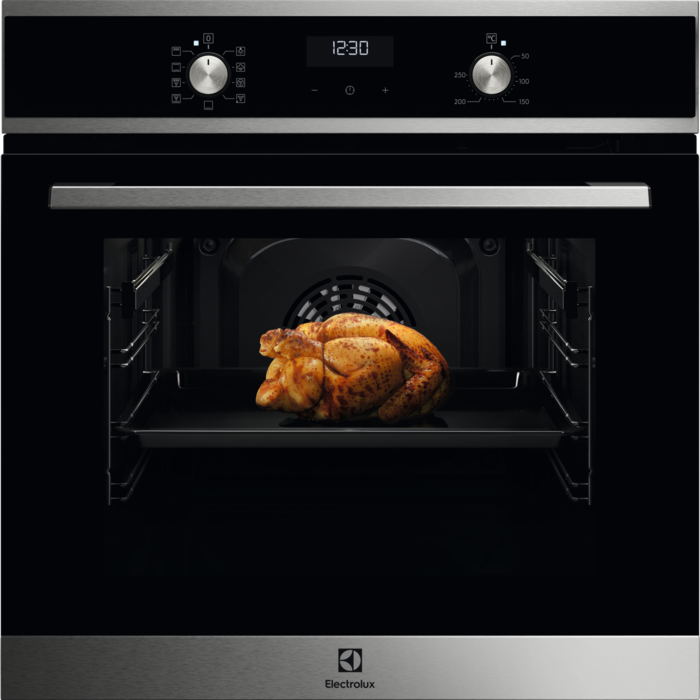 З висувними регуляторами та електронним таймером, управління духова шафою стає простим та зручним. Компактні розміри (590x594x560мм) вписуються в будь-який інтер'єр, що робить Electrolux EOD5H70BX незамінним помічником на кухні.