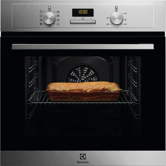 Вбудована духова шафа Electrolux EOF3H00BX є ідеальним вибором для будь-якої кухні. Ця багатофункціональна духова шафа з кільцевим нагрівальним елементом дозволяє легко приготувати різноманітні страви завдяки численним функціям, такими як нижній нагрів, традиційна кулінарія, розморожування, готування з вентилятором, гриль, волога конвекція та турбо-гриль. Об'єм духовки досягає 65 літрів, що забезпечує достатньо місця для приготування їжі на цілу сім'ю.