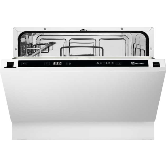 Модель ESL2500RO має вбудовану конструкцію і може бути встановлена в високу нішу. Її розміри (ширина – 55 см, висота – 44 см, глибина – 50 см) дозволяють легко інтегрувати її у будь-який кухонний простір. Змивна машина працює за допомогою стандартних нижніх розпилювачів та не має автоматичного вимкнення, що робить її надійною у використанні.