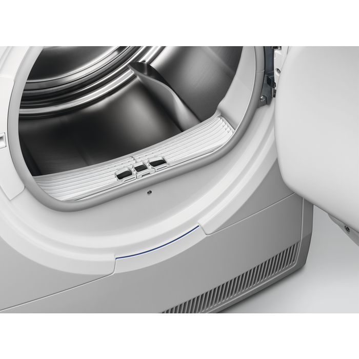 З функцією відкладеного пуску ви можете налаштувати час початку роботи машини відповідно до вашого графіку. Індикатори для фільтра, резервуару і конденсатора завжди підкажуть вам, коли потрібно провести обслуговування. Сушильна машина має клас енергоспоживання B, що дозволяє економити на електриці.