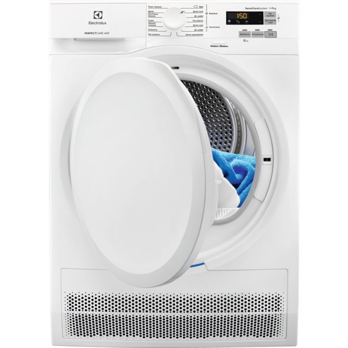 Модель є конденсаційною сушильною машиною, що означає, що волога конденсується у ємність для води, без необхідності в зовнішній вентиляції. Ваша задача – тільки підключити її до електромережі. Датчик сушильного барабана автоматично визначає рівень вологи в тканинах, зупиняючи процес сушіння, коли одяг досягає бажаного стану.