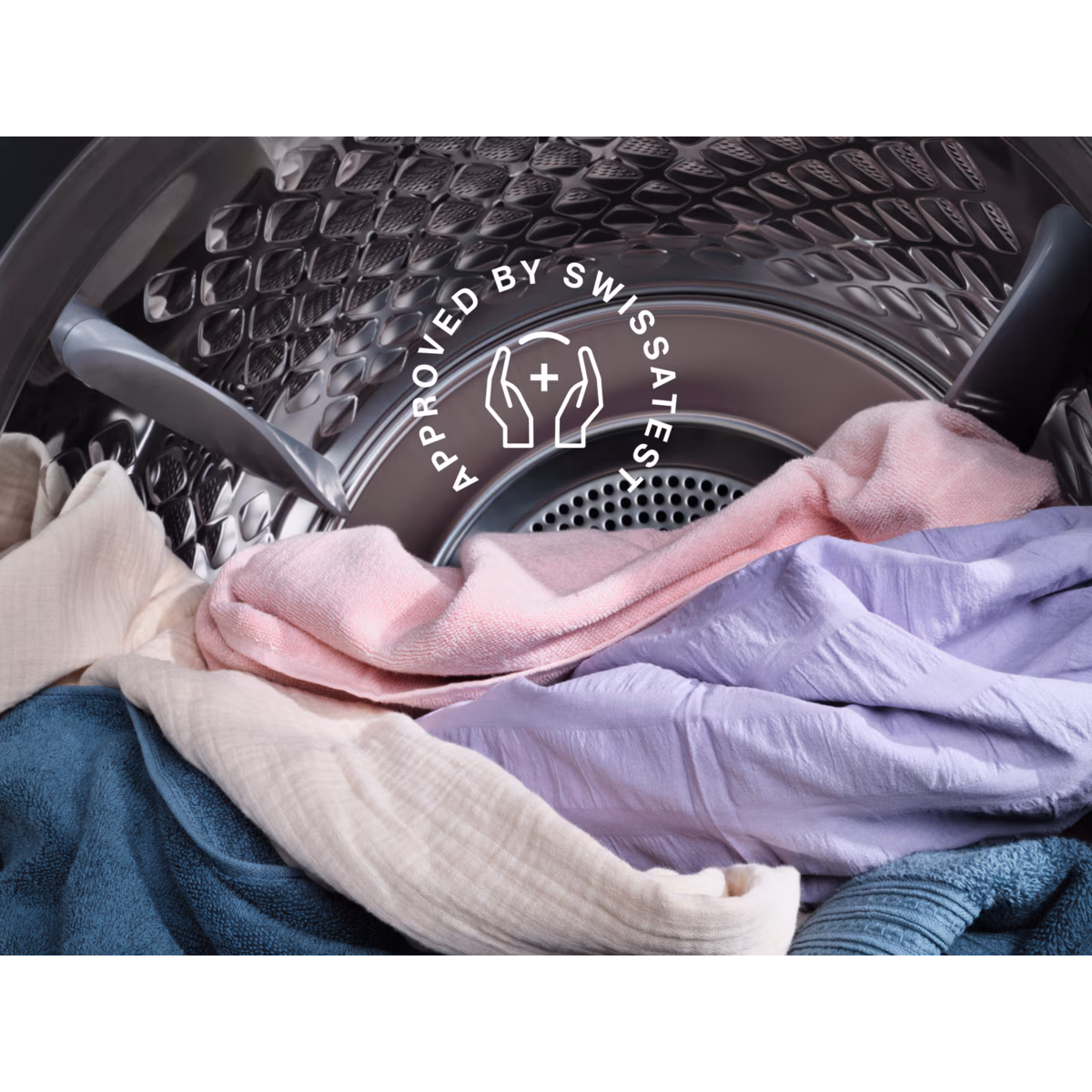 Ключовою перевагою є система управління з сенсорами, яка визначає, коли одяг досяг потрібного рівня сухості, гарантуючи, що речі не пересушуються. Внутрішнє освітлення забезпечує зручний доступ і огляд всередині машини навіть у темряві.