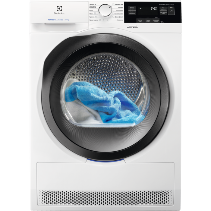 Серед інших зручностей варто зазначити внутрішнє освітлення, яке робить користування пристроєм більш комфортним. Модель також оснащена фільтром EcoFlow, що забезпечує ефективне очищення повітря від ворсу та частинок. Комбінована програма XL дозволяє реалізувати всі потреби в сушки, включаючи сушіння для прасування та зберігання.