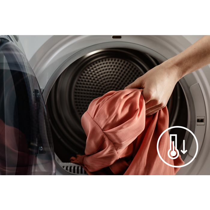 Ця модель оснащена сенсором вологості, який автоматично регулює час сушіння, виявляючи, коли одяг досягає потрібного рівня сухості. Різноманітні додаткові програми сушіння дозволяють знайти оптимальне налаштування для різних типів тканин, таких як бавовна, синтетика, делікатні матеріали та багато інших.