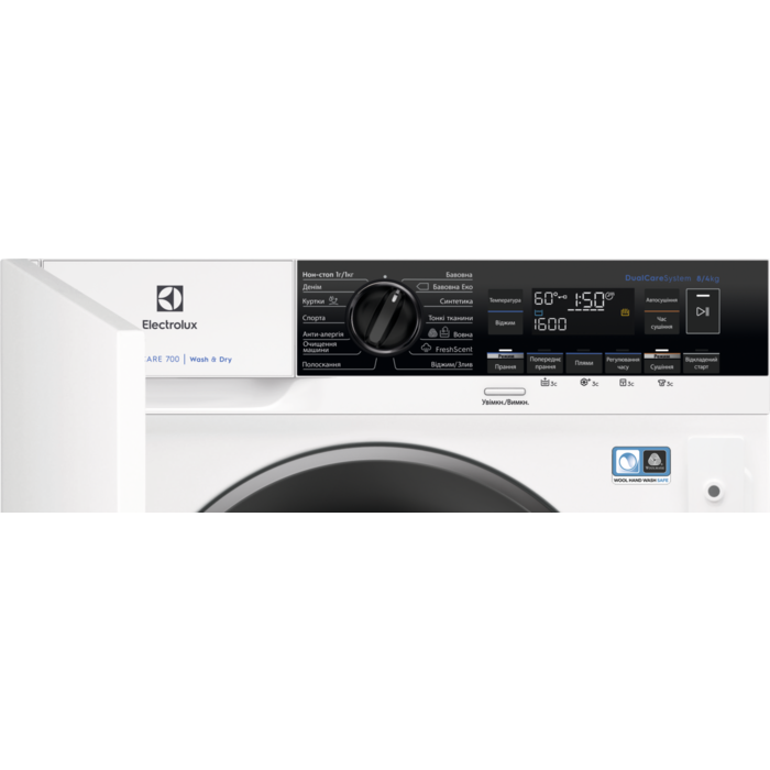Модель оснащена конденсаційною системою сушіння, что позволяет эффективно высушивать белье без необходимости в дополнительных устройствах. В комплект входят различные программы стирки, такие как Cotton, Eco Cotton, Синтетика, Вовна, а также антиалергенна програма, что делает машину идеальным выбором для людей с чувствительной кожей.