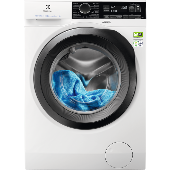 Машина оснащена технологіями UltraCare, SteamCare, SensiCare, що забезпечують надійний і дбайливий догляд за різними видами тканин. Крім базових програм прання, таких як бавовна, деликатне або синтетика, пральна машина має спеціальні програми для виробів з дениму, антиалергенні програми та свіжість для вашого одягу - FreshScent para.