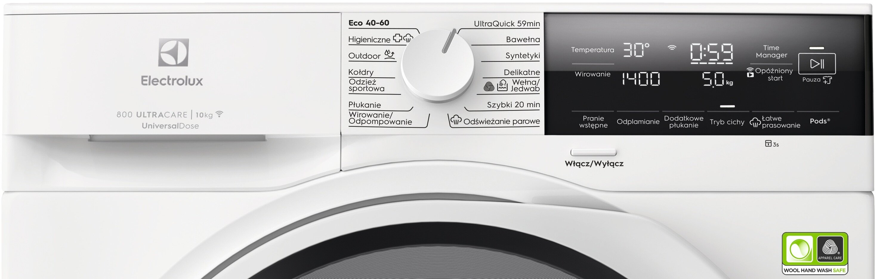 Ця модель також оснащена технологією SteamCare, що дозволяє зменшити складність прасування завдяки використанню пари, а функція UniversalDose спрощує процес додавання миючих засобів. Серед програм прання є спеціальні для делікатних тканин, спортивного одягу та навіть для пуховиків, а також Ультракоштовний 59хв для швидкого прання.