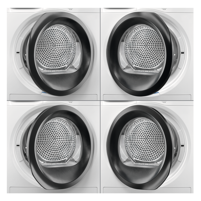Сушильна машина також оснащена додатковими програмами сушіння з регульованою тривалістю, а зворотне обертання запобігає утворенню зморшок і заплутуванню одягу. Сенсорний РК-дисплей робить управління легким і зручним, надаючи можливість відкладеного запуску та індикатори для різних режимів сушіння, включаючи сушіння для прасування та зберігання.