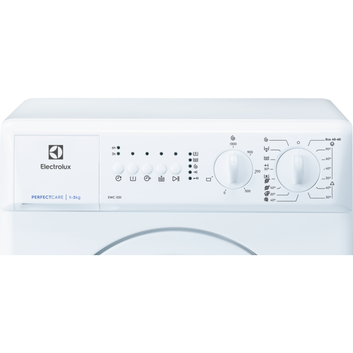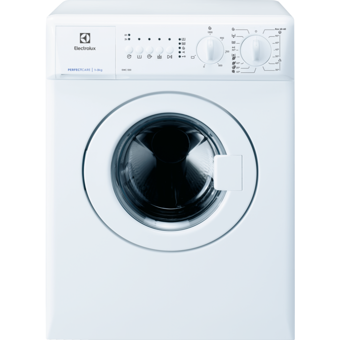 Electrolux EWC1351 - це компактна пральна машина з переднім завантаженням, призначена для встановлення на вільному місці. Максимальний об'єм завантаження складає 3 кг, а максимальна швидкість віджимання - 1300 об/хв.