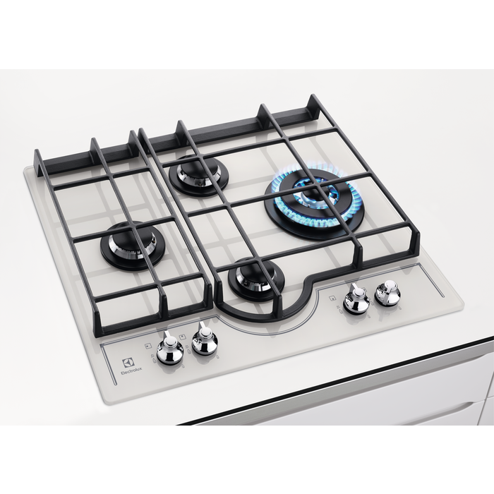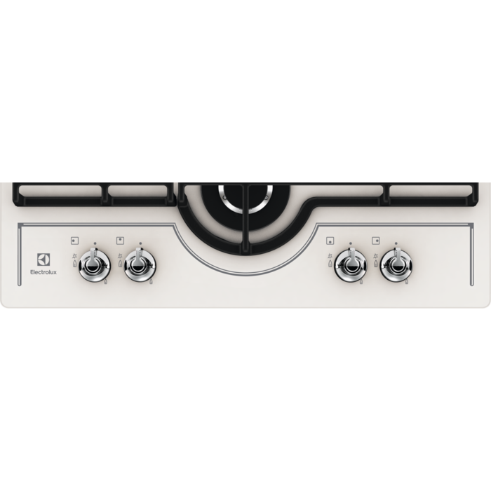 Наявність 4 конфорок різної потужності, включаючи Powerful Wok, дозволяє готувати різноманітні страви зі швидкістю та точністю. Керування елементами розташоване зручно на передній панелі, а інтегроване електричне підпалювання дозволяє запалювати конфорки поворотним регулятором.