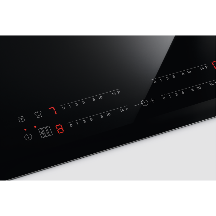 Керування варильною поверхнею здійснюється за допомогою технології плавного сенсорного регулювання з прямим доступом, розташованого спереду справа. Індукційні конфорки оснащені функцією швидкого нагрівання та автоматичним виявленням посуду.