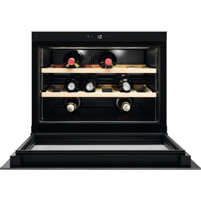 Однією з ключових характеристик є електронне управління температурою з цифровими показниками, що гарантує точний контроль за умовами зберігання. Внутрішнє LED-освітлення забезпечує хороший огляд, навіть у темряві. Для зручності використання в холодильнику передбачені дві полички з дерева та одна пластикова поличка, що дозволяє ефективно організувати простір.
