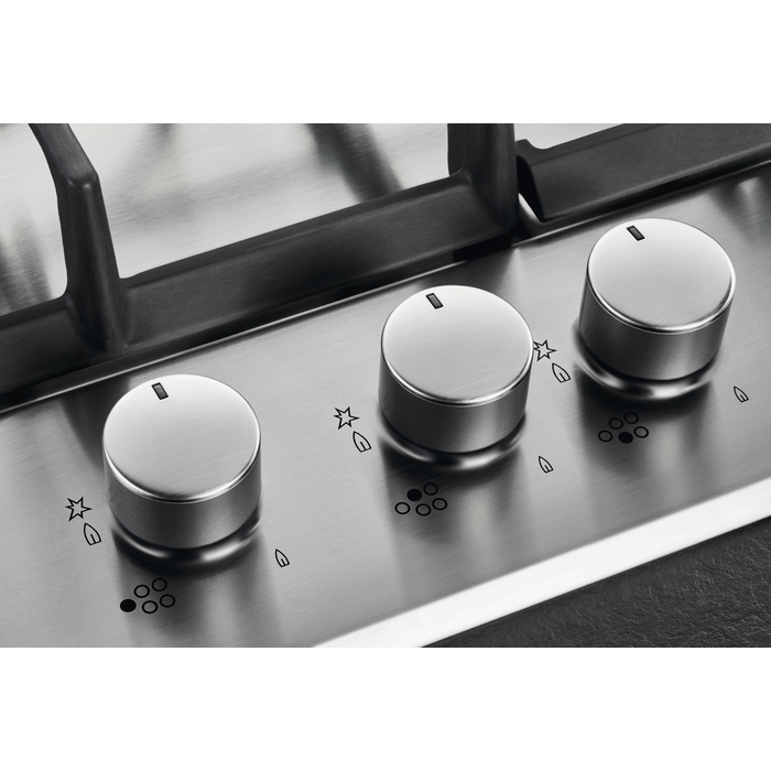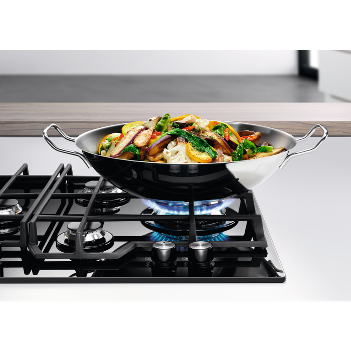 Electrolux KGG6456K - це газова варильна поверхня з чотирма конфорками, що поєднує в собі сучасний дизайн та високу функціональність. Модель має Speed Burner, який дозволяє швидко нагрівати посуд, а також потужну конфорку Powerful Wok для приготування страв у воку. Варильна поверхня виконана з використанням газових конфорок на скляній поверхні, що надає їй стильний зовнішній вигляд. Управління розташоване на передній панелі, що забезпечує зручний доступ до нього. Модель має інтегроване електричне підпалювання, яке вмикається поворотним регулятором, а також газ-контроль на основі термопари, що автоматично припиняє подачу газу, якщо полум’я вимикається. Поверхня оснащена підставками для чавунного посуду та набором для переведення на інший тип газу. Максимальна потужність складає 8900 Вт, що забезпечує швидке приготування страв. Що стосується безпеки, варильна поверхня обладнана термопарою для захисту від витоку газу. Її розміри становлять: ширина 595 мм, глибина 520 мм, ширина вбудовання 560 мм, глибина вбудовання 480 мм. Electrolux KGG6456K - це надійний, функціональний і стильний вибір для вашої кухні.