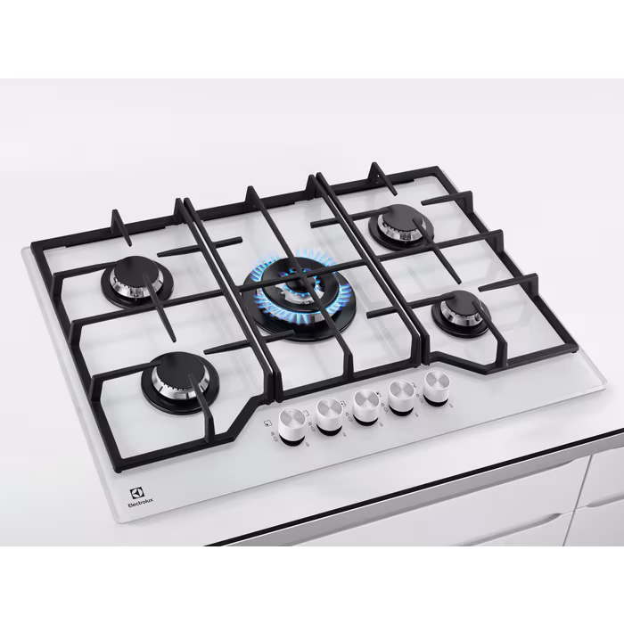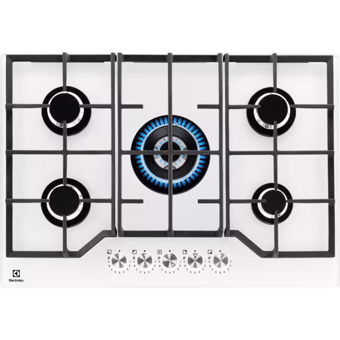 Плита Electrolux KGG75362W — це стильний та функціональний прилад для сучасної кухні. Вона має **скляну газову поверхню** шириною 740 мм та глибиною 510 мм, що надає їй елегантного вигляду. Завдяки **регуляторам на передній панелі** ви зможете легко контролювати потужність кожного з п'яти приготувальних контурів.