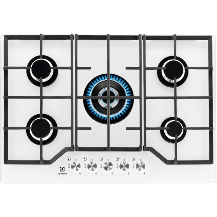 Варильна поверхня Electrolux KGG7536W - це сучасний кухонний прилад, який відповідає всім потребам сучасної господині. Завдяки технології Mariane у кожній з п'яти зон готування гарантується рівномірне розподілення тепла для швидкого та якісного приготування їжі. Газова плита зі склом забезпечує надійність та довговічність використання. Зручне розташування панелі управління з передньої сторони дозволяє швидко та легко регулювати температуру кожної зони. Варильна поверхня оснащена покажчиком того, що певна зона ще залишається гарячою, що забезпечує безпеку під час приготування страв. Також варильна поверхня має функцію конверсії газу, що робить її універсальною для будь-яких умов життя. Вона може бути легко встановлена над холодильником чи посудомийною машиною завдяки своїм компактним розмірам. Electrolux KGG7536W - це не лише надійний прилад, а й стильний елемент кухонного інтер'єру, який дозволить кожній господині втілити свої кулінарні фантазії.