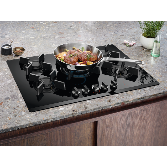 Electrolux KGG753753K: варильна поверхня з технологією Hob2Hood® Electrolux KGG753753K - це варильна поверхня, яка поєднує в собі ефективність та сучасний дизайн. Завдяки Hob2Hood® ви зможете автоматично керувати витяжкою з плити, що забезпечить оптимальний рівень видалення парів та запахів під час готування. Поверхня має 5 зон нагріву, які забезпечують різноманітні можливості для приготування їжі. Керування відбувається за допомогою зручних покрутел, розташованих на передній панелі. Кожна зона нагріву має свою потужність та діаметр, що дозволяє вам підбирати оптимальний режим приготування для кожного виду посуду. Крім того, електронний світлодіодний індикатор вказує стан палаючого пальника, що робить процес готування більш контрольованим. Також варильна поверхня Electrolux KGG753753K може бути встановлена над холодильником, морозильною камерою або посудомийною машиною, що дозволяє оптимізувати розміщення кухонного простору. Завдяки своєму чорному кольору та сучасному дизайну, ця варильна поверхня стане стильним та функціональним доповненням до вашої кухні, наділеною усіма необхідними технологіями для комфортного та безпечного готування.