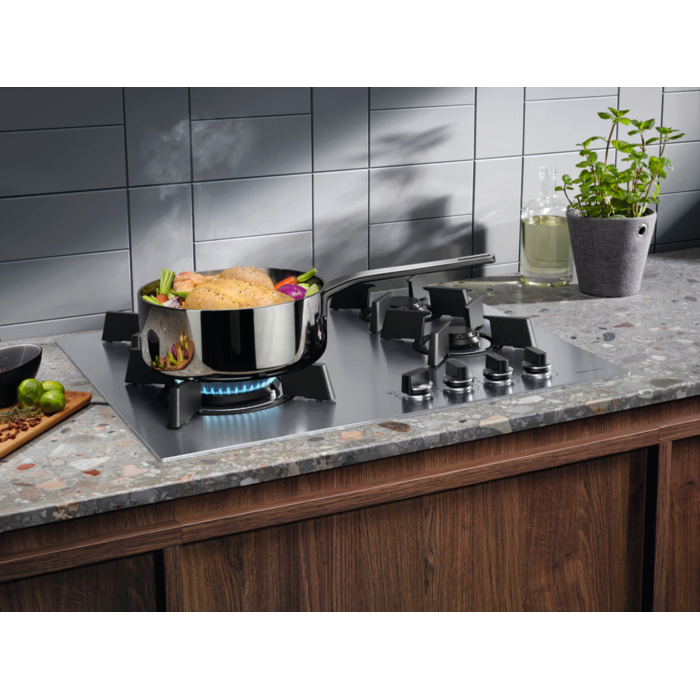 У конструкції варильної панелі використано функцію Step Power, що дозволяє максимально гнучко налаштовувати потужність конфорок, в залежності від кулінарних потреб. Додатковими перевагами є легке очищення нержавіючої сталі, що робить догляд за поверхнею надзвичайно простим. Наявність термопари забезпечує підвищену безпеку, захищаючи від витоків газу.