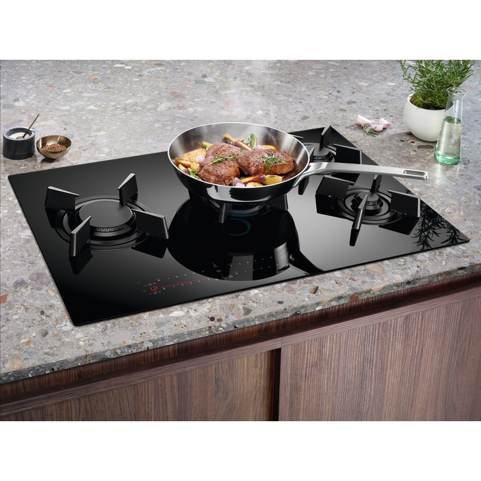 Варильна поверхня Electrolux моделі KGV8473IK - це високоякісний прилад з сенсорним керуванням і 4 зонами нагріву, який ідеально підходить для сучасних кухонь. Поверхня виготовлена з міцного скла, що робить її дуже стійкою та легкою у догляді. Завдяки технології Hob2Hood® ця варильна поверхня може автоматично взаємодіяти з витяжкою, регулюючи рівень витяжки в залежності від поточної потужності нагріву. Це забезпечує оптимальне видалення парів та запахів, забезпечуючи свіже повітря в кухні. Поверхня має підсвічені сенсорні кнопки, що робить її дуже зручною у використанні. Крім того, вона обладнана різними функціями, такими як функція Stop and Go, захист від дітей та сигнал звукового сповіщення. Також є індикатор залишкового тепла, що дозволяє уникнути випадкових опіків. Ця варильна поверхня має інтегровану систему керування з витяжкою та може бути легко поєднана з іншими приладами в кухні. Її стильний дизайн і чорний колір роблять її відмінним вибором для сучасних кухонь. Таким чином, варильна поверхня Electrolux KGV8473IK - це високоефективний та функціональний прилад з інноваційними технологіями, який дозволить вам швидко й легко готувати ваші улюблені страви, забезпечуючи при цьому безпеку та комфорт.