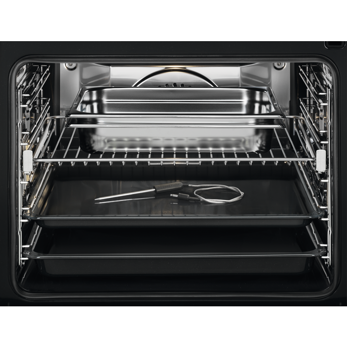 Духовка має три рівні завантаження та термощуп, що дозволяє контролювати готовність будь-якого м'яса. Функція швидкого нагрівання зекономить ваш час, а автоматичні програми приготування відповідно до ваги продуктів забезпечать бездоганний результат без зайвих зусиль.