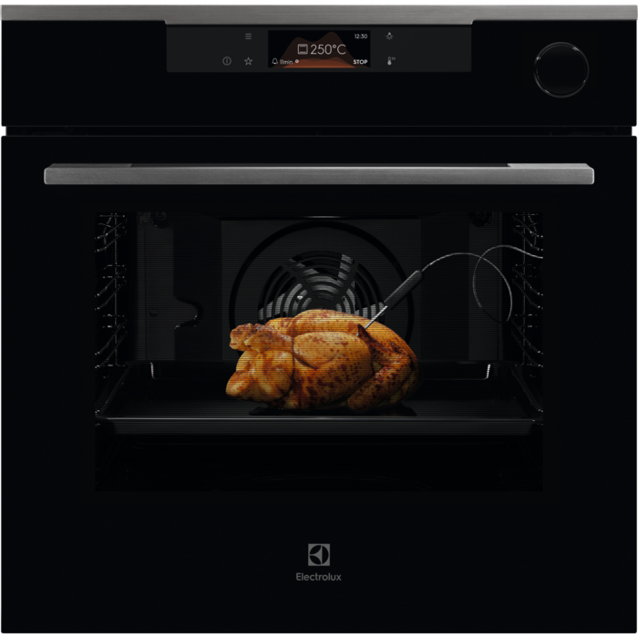 Духовий шкаф обладнаний термосондою, що дозволяє точно контролювати температуру приготування, а також функцією швидкого розігрівання, яка значно скорочує час очікування. Інтуїтивно зрозумілий сенсорний TFT екран дозволяє легко налаштовувати параметри приготування без зайвих зусиль. Ви також зможете користуватися мультифункціональним приготуванням на трьох рівнях одночасно, що відкриває нові можливості для приготування великої кількості страв.