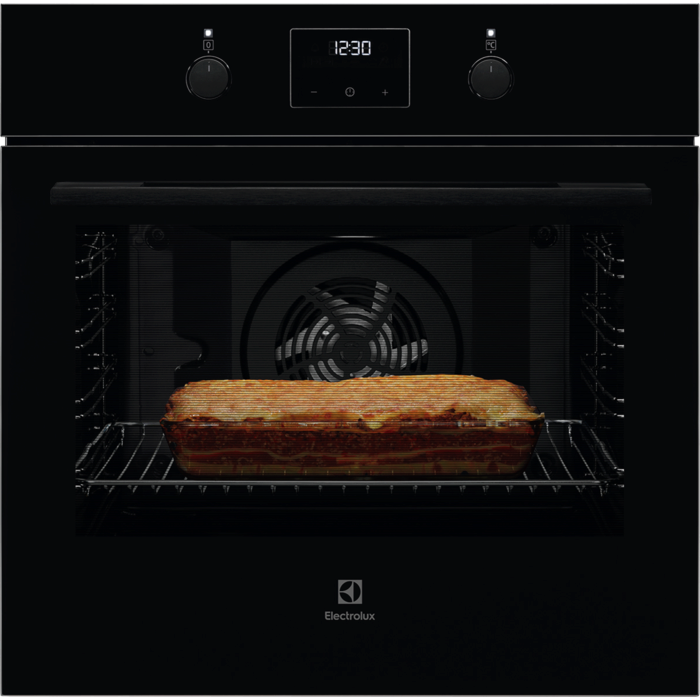 Додатково, ви отримаєте галогенне підсвічування, яке забезпечує рівномірне освітлення всередині приладу, а автоматичний вентилятор охолодження подбає про безпеку і довговічність електронних компонентів. Духовий шкаф Electrolux KOFGH70TK - це ідеальний вибір для тих, хто цінує якість і комфорт у приготуванні їжі.